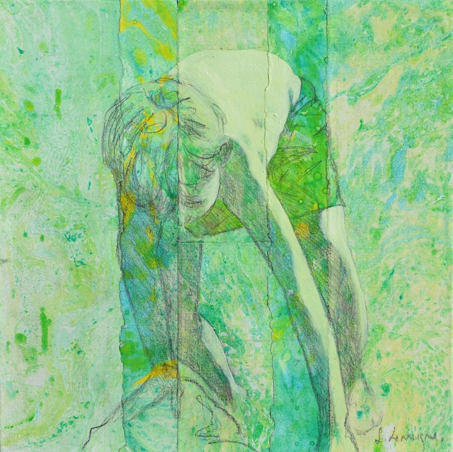 Peinture à l'huile et crayon graphite sur papier fait main marouflé sur toile, 20x20cm.
